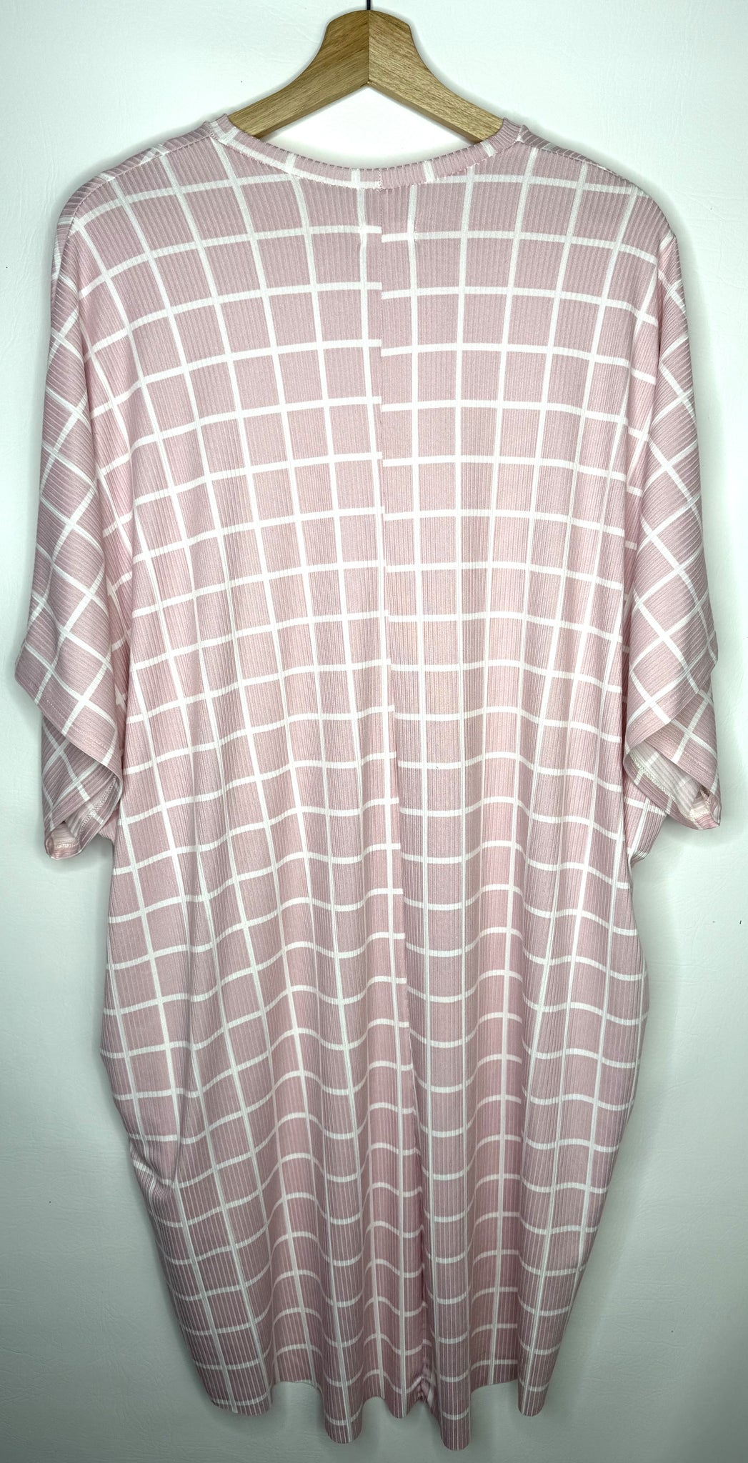 El Baggie Dress es una traje oversize, comodo y fresco. Esta pieza la puedes dar un look casual como uno mas formal con solo añadir botas, sandalias, tenis o plataformas y diferentes accesorios. En fin un look a tu gusto, que no se me olvide que el traje tiene bolsillos y su ruedo es raw cut. Este Baggie Dress esta trabajado en tela rib knit en color rosa con lineas en color blanco formando cuadros.