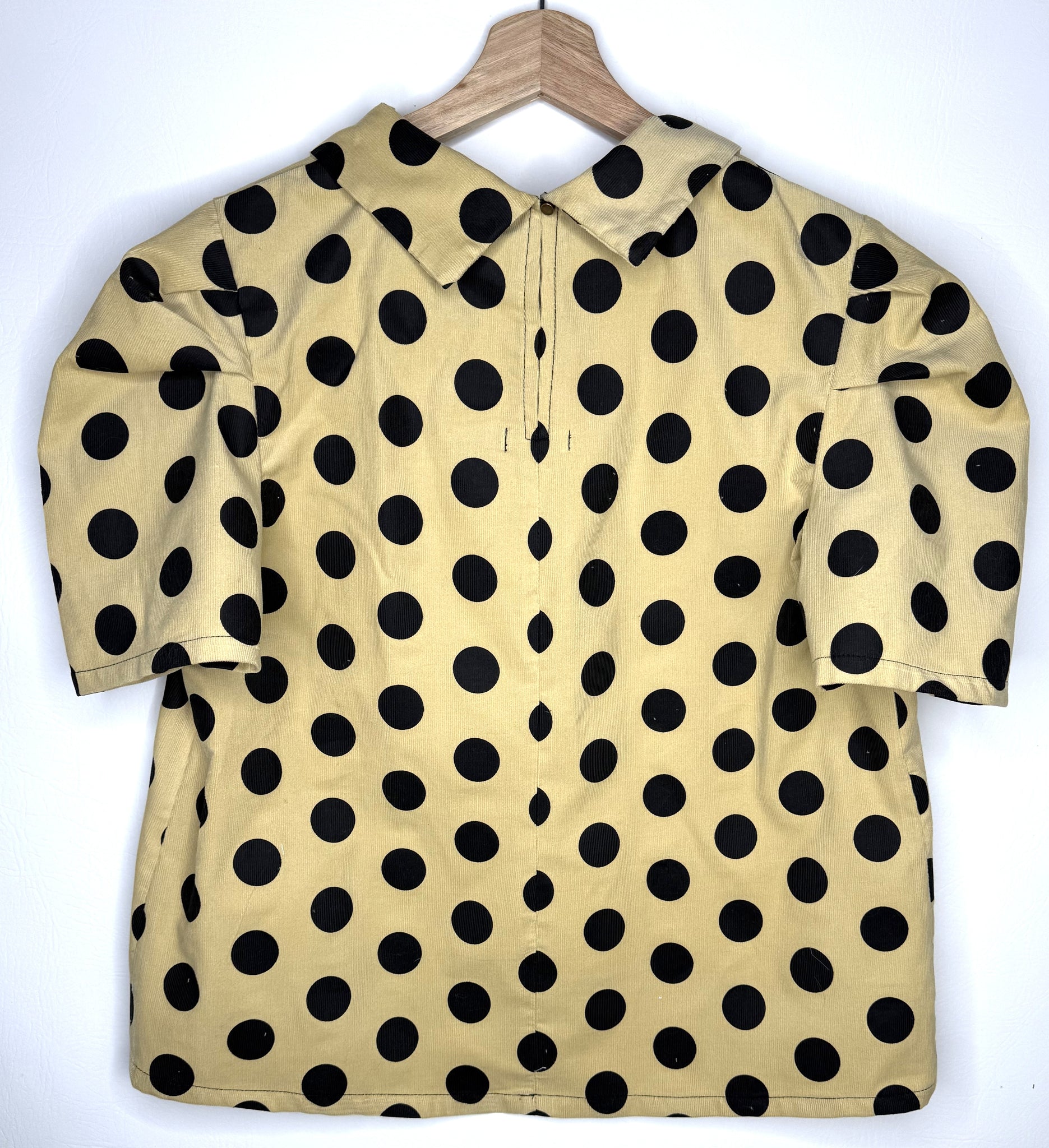La Cucipy es una hermosa camisa con cuello, tiene unas pinzas en las mangas que les da un toque chic. En la parte de atras cuenta con una apertura y su cierre es con un pequeño boton. A esta camisa le puedes dar un toque elegante y tambien un toque casual de lo que si estoy segura es que con la Cucipy te vas a ver no solo hermosa, tambien UNICA. Esta Cucipy es trabajada en tela corduroy fondo color crema con puntos de 1 pulgada en negro.